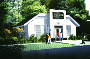 10月21日上午,笔者在市环卫处办公室看到该公厕的设计效果图,青瓦白墙,公厕入口处上方的LED屏滚动播出温馨提示。
